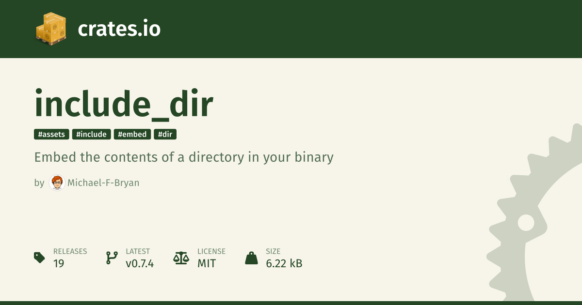 へ書き込む、として内部で使われる。 (edited)let hoge = include_bytes!("ファイル名");
