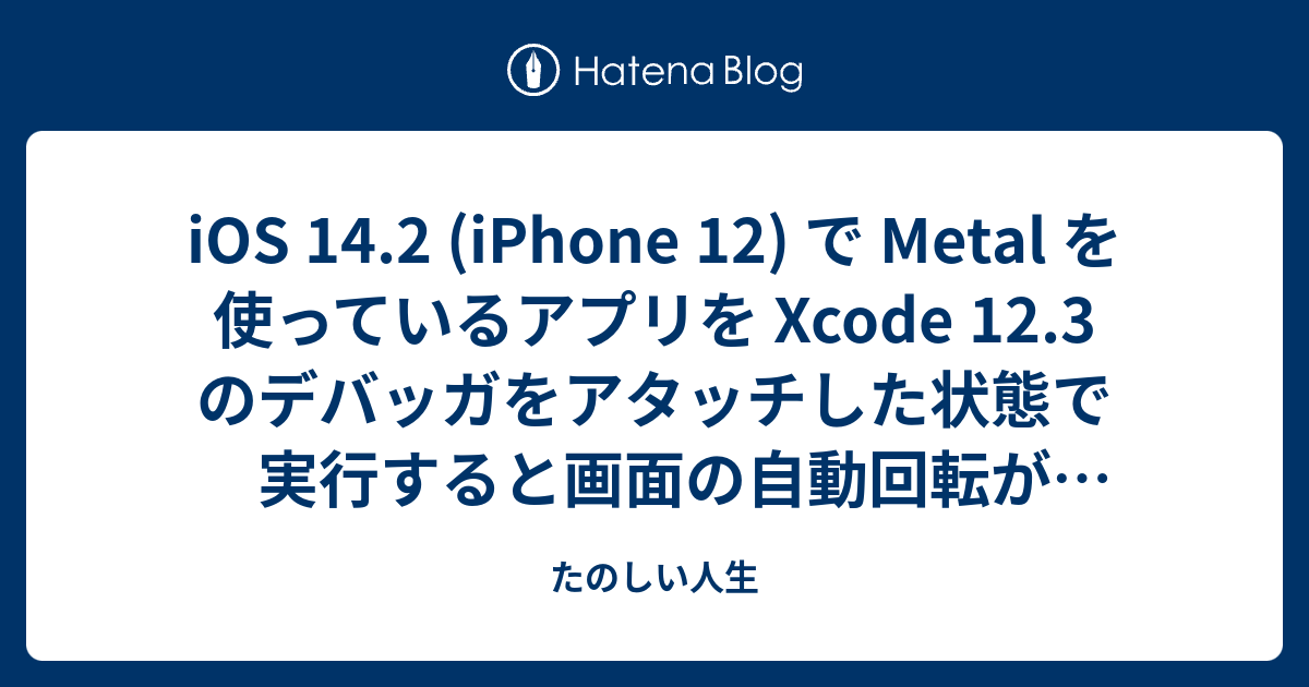自分で書いてもタイトルが意味不明なのですが macOS Big Sur (11.1) Xcode 12.3 iOS 14.2 (iPhone 12) Metal を利用した iOS アプリ Xcode のデバッガがアタッチされた状態で実行 で iOS アプリの画面の自動回転が機能しない。 解決法 Scheme の run > option > GPU Frame Capture を Automatically Enabled から Metal に変更する。 おわり USB ケーブルをつないで iOS 実機で Metal を利用したアプリのデバッグ実行を Xcode から行っていると当該現象が発…