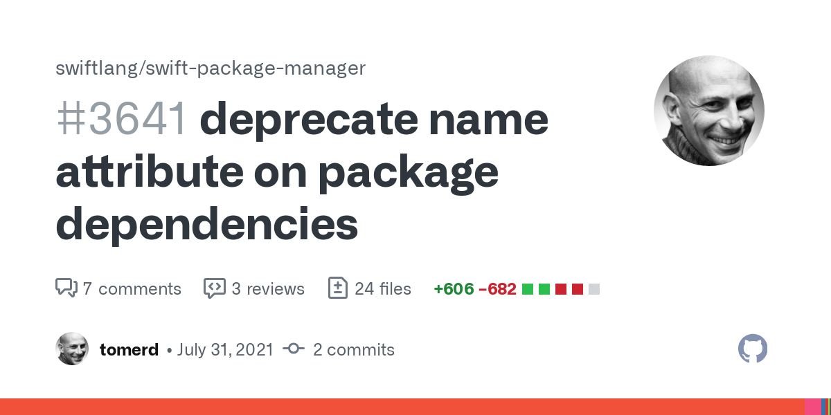 1from: のやつを exact: に間違ってコピペしちゃったんだと思ってました .exact は exact: に変わるけど、 .upToNextMinor はそのまま使える。 exact: とかのAPI変更ってプロポーザルあるんだっけ @d_date 知ってる? .upToNextMinor を使うのは非推奨にならない…のでしょうか? .package(url: String, "1.2.0"..<"1.3.0") のように範囲指定するのが推奨になるのかなぁと思っていました。 ref: https://developer.apple.com/documentation/swift_packages/package/dependency/requirement/2878234-uptonextminor 自分のイメージ↓ // Before .package(url: String, .branch("release/5.6")) .package(url: String, .revision("e74b07278b926c9ec6f9643455ea00d1ce04a021")) .package(url: String, .exact("1.2.0")) .package(url: String, .upToNextMajor(from: "1.2.0")) .package(url: String, .upToNextMinor(from: "1.2.0")) // After .package(url: String, branch: "release/5.6") .package(url: String, revision: "e74b07278b926c9ec6f9643455ea00d1ce04a021") .package(url: String, exact: "1.2.0") .package(url: String, from: "1.2.0") // `.package(url: String, "1.2.0"..<"2.0.0")` と同義 .package(url: String, "1.2.0"..<"1.3.0") ref: https://github.com/uhooi/mobile-app-trends/blob/main/2021/2021_4q.md#56リリース-0223.upToNextMinor を使うのは非推奨にならない…のでしょうか? .package(url: String, "1.2.0"..<"1.3.0") のように範囲指定するのが推奨になるのかなぁと思っていました。 ref: https://developer.apple.com/documentation/swift_packages/package/dependency/requirement/2878234-uptonextminor 自分のイメージ↓ // Before .package(url: String, .branch("release/5.6")) .package(url: String, .revision("e74b07278b926c9ec6f9643455ea00d1ce04a021")) .package(url: String, .exact("1.2.0")) .package(url: String, .upToNextMajor(from: "1.2.0")) .package(url: String, .upToNextMinor(from: "1.2.0")) // After .package(url: String, branch: "release/5.6") .package(url: String, revision: "e74b07278b926c9ec6f9643455ea00d1ce04a021") .package(url: String, exact: "1.2.0") .package(url: String, from: "1.2.0") // `.package(url: String, "1.2.0"..<"2.0.0")` と同義 .package(url: String, "1.2.0"..<"1.3.0") ref: https://github.com/uhooi/mobile-app-trends/blob/main/2021/2021_4q.md#56リリース-0223 .upToNextMinor は非推奨にならないです。 元々あった Package.Dependency.Requirement を返す .upToNextMinor は deprecated 指定されているんですが、 それとは別に新しく Range<Version> を返す .upToNextMinor が追加されるのです。 コードはここです。(Appleのドキュメントだとどこにあるかはわからなかったです) https://github.com/apple/swift-package-manager/blob/e25a590dc455baa430f2ec97eacc30257c172be2/Sources/PackageDescription/PackageRequirement.swift#L219 それが https://discord.com/channels/291054398077927425/304939011904897024/948065337448996955 で書いている事です。 つまり、 .upToNextMinor と書いたときに これまでは Package.Dependency.Requirement.upToNextMinor と解釈されていたのが、 これからは Range<Version>.upToNextMinor と解釈される、という事です。