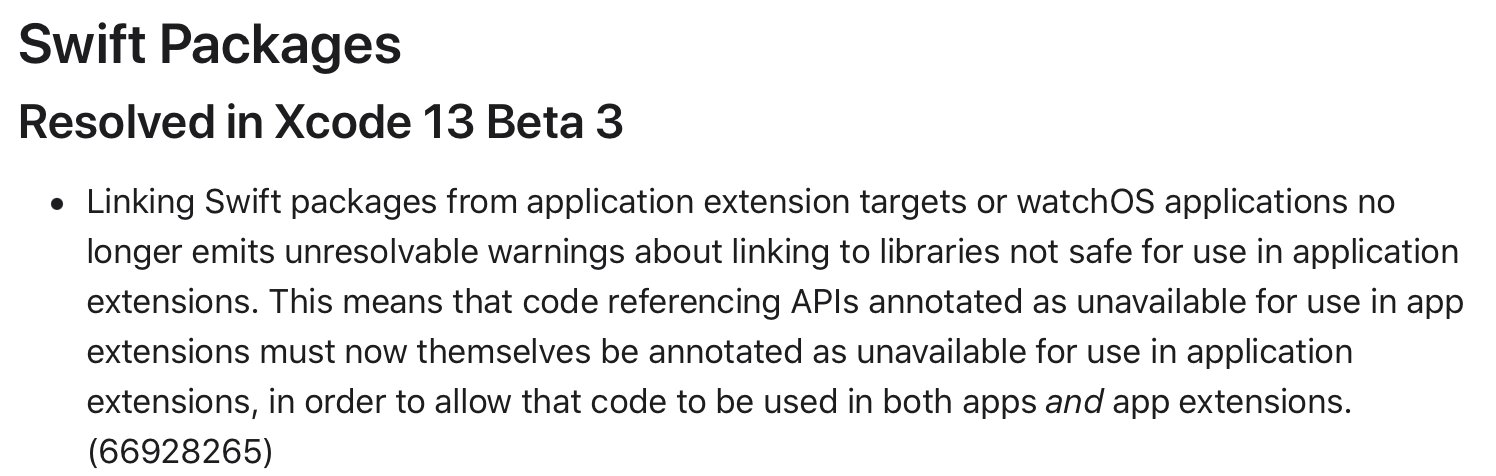 1var package = Package(..) package.addProduct(name: "Foo") .module 指定でPreviewできない件、自分もハマったのでまとめました。特にココでの議論から進展はないのですが、実は他の解決方法とか新情報がありましたら教えていただけると嬉しいです .intentdefinition のように Xcode が自動生成するファイル( FooIntent.swift )があるものを、うまく Swift Package に閉じ込める方法をご存じの方がいたら教えてほしいです exact: の場合のコメントが /// It allows you to specify the minimum version you require, allows updates that include bug fixes /// and backward-compatible feature updates, but requires you to explicitly update to a new major version of the dependency. ↑マイナーバージョンは固定しないように見えるんだけど、 コメントが間違ってるのか、それともexactがこう変わった(元から?)んだろうか? (edited)@available(_PackageDescription, deprecated: 5.6, message: "use specific requirement APIs instead (e.g. use 'branch:' instead of '.branch')") public static func package( url: String, _ requirement: Package.Dependency.Requirement ) (edited).upToNextMajor → from: (前からあった) .branch → branch: