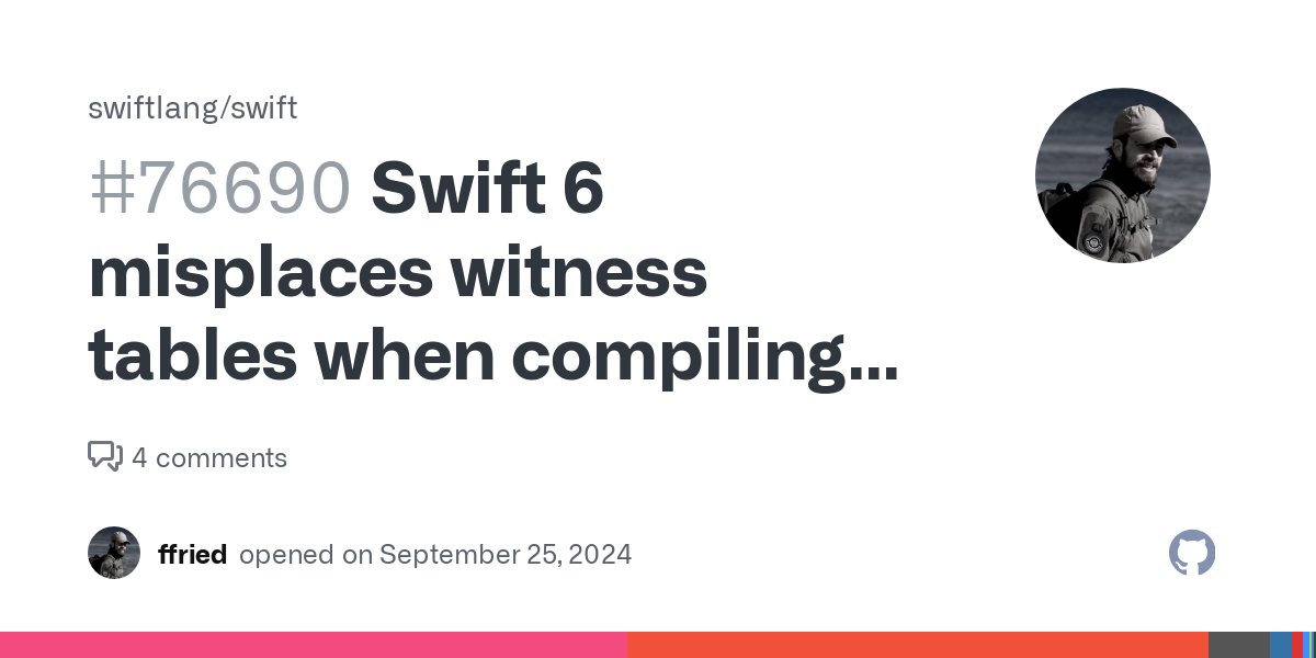 swiftLanguageVersions: [.v5, .version("6")]が書かれた外部パッケージはPackage.swiftのswift-tools-versionに関係なく-swift-version 6でビルドされることを確認した。 この挙動はバグってことで良いのかな。swiftLanguageVersionsにswift-tools-versionより大きいバージョンを設定できる意義ってのは何?swiftLanguageVersionsを優先してる。 // Figure out the swift version from declared list in the manifest. let declaredSwiftVersions = try declaredSwiftVersions() let computedSwiftVersion: SwiftLanguageVersion = if let declaredSwiftVersion = declaredSwiftVersions.first { declaredSwiftVersion } else { // Otherwise, use the version depending on the manifest version. self.manifest.toolsVersion.swiftLanguageVersion }swiftLanguageVersionsを参照する必要ない気がする。swiftLanguageVersionsにtools-versionより古いバージョンが書かれている場合を考えると、ここのキャップが ToolsVersion.current ではなく self.manifest.toolsVersion.swiftLanguageVersion になってるべき? https://github.com/swiftlang/swift-package-manager/blob/392a2a99510f391cb172ceef510d7aefce5c7c62/Sources/PackageLoading/PackageBuilder.swift#L1248swift-tools-version に基づいて実行するツールバーションが決まってるんじゃないんか。swift-tools-version:6でswiftLangaugeVersions: [.v5]の時に、-swift-version 5としたいかどうかによる? (edited)ToolsVersion.current ではなく self.manifest.toolsVersion.swiftLanguageVersion になってるべき? mainブランチでビルドとか通らなくて、色々めんどい// swift-tools-version:導入前からのコードぽい。 https://github.com/swiftlang/swift-package-manager/commit/c946f313e5ba5f96ebbed3e424befe45d41a2c8e#diff-68f661bfe880d4bf7059718964ee104add3839e7e2f5bc8bfd644ab706ff7149R812.v15 が書けるけど Linux 版だと書けない.macOS("15.0") でお茶を濁して (edited).macOS(.v15) にすると問題が起きることがわかった platforms: [ .macOS(.v15), ], にしなければ、OSアプデは問題ないすよ (edited)docker buildxの--progress=ttyみたいなものかな https://forums.swift.org/t/pitch-build-progress-display-control-for-swiftpm-plugins/78678docker buildxの--progress=ttyみたいなものかな https://forums.swift.org/t/pitch-build-progress-display-control-for-swiftpm-plugins/78678 --progress=plainが強制されていたので --progress=autoをオプトインできるようにする形です