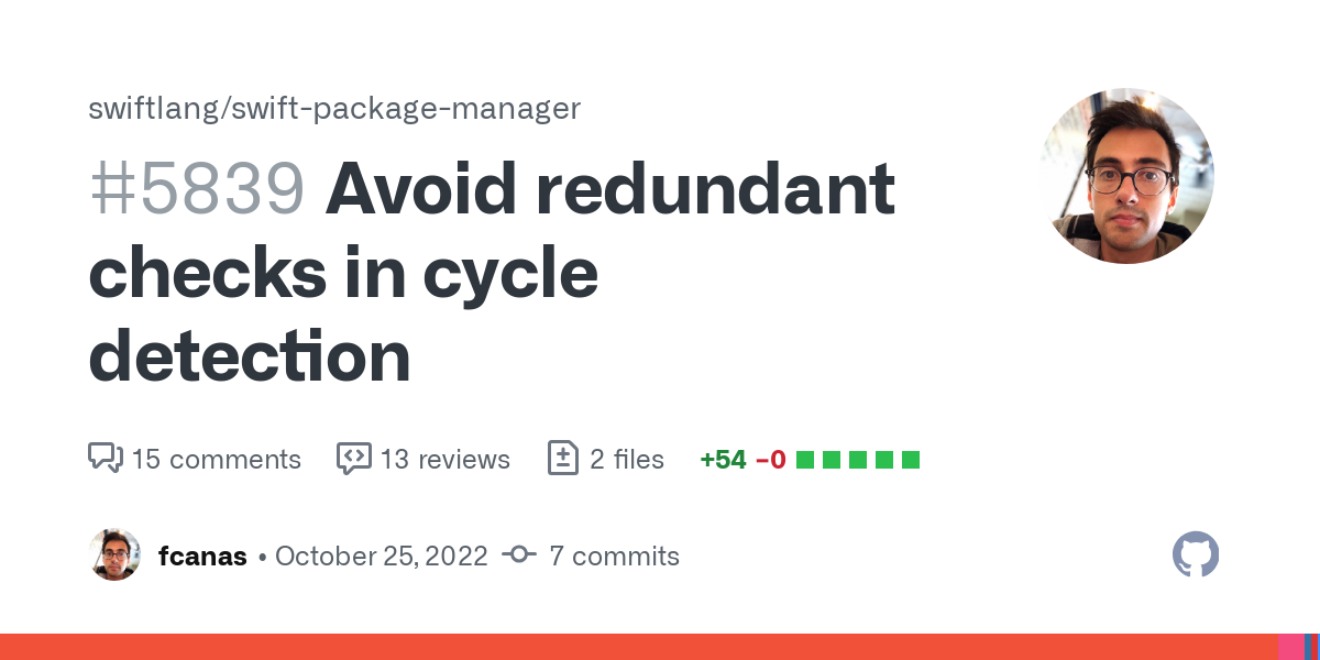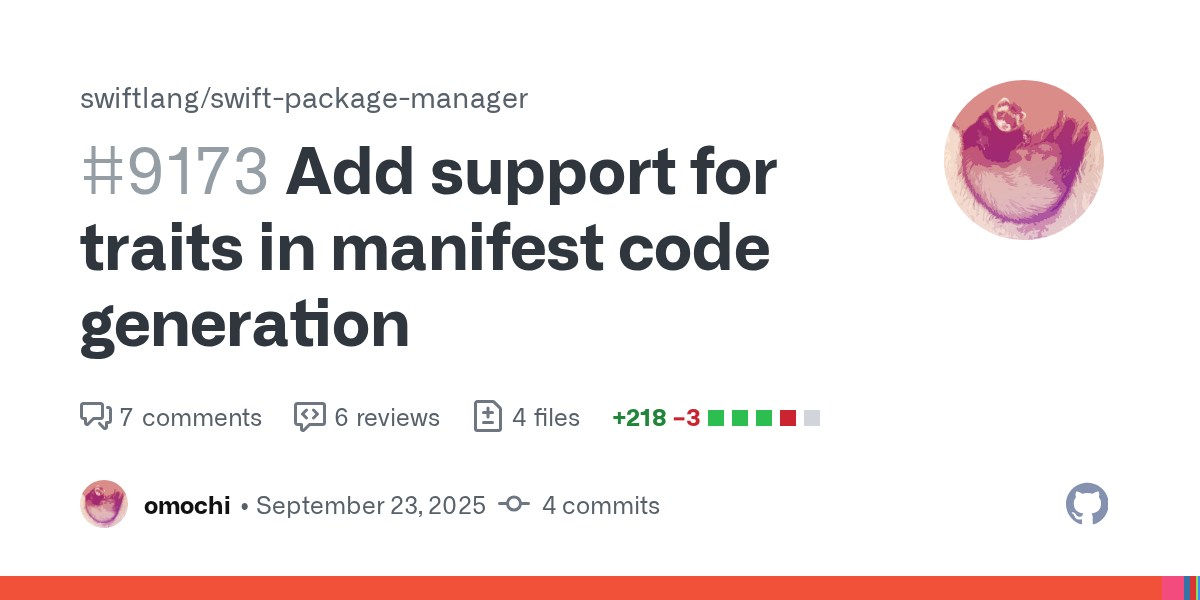 1swift-build ベースになったらコードが綺麗になって自然と治ったりするかな。--build-system swiftbuild をつけて試せないのですか?.build ディレクトリと、ソースツリーのファイルの modified time が一致していればちゃんと再利用される dependencies: で定義する依存先ライブラリは .build/checkouts に配置されているから、 .build をキャッシュすれば自然と modified time も同期されるから簡単。 プロジェクト本体のソースツリーの部分が問題で、 git からチェックアウトするときに modified time は管理されてなくてフレッシュな時刻になっちゃうから、それで本体部分に関しては .build があってもキャッシュが機能しない。 (edited).build に入れて一緒にキャッシュさせるとうまく整合性が同期できる。 ついでにその変化があったかどうかで、キャッシュのストアを更新することで、フレッシュな .build に更新できるようにした。(GitHub Actions の cache を想定)swift package benchmark みたいに,command plugin 内でビルドを走らせている場合に --build-system swiftbuild 相当のものをどうやって渡せるんだろうというのは気になってます.ベンチマークは割と使うので.