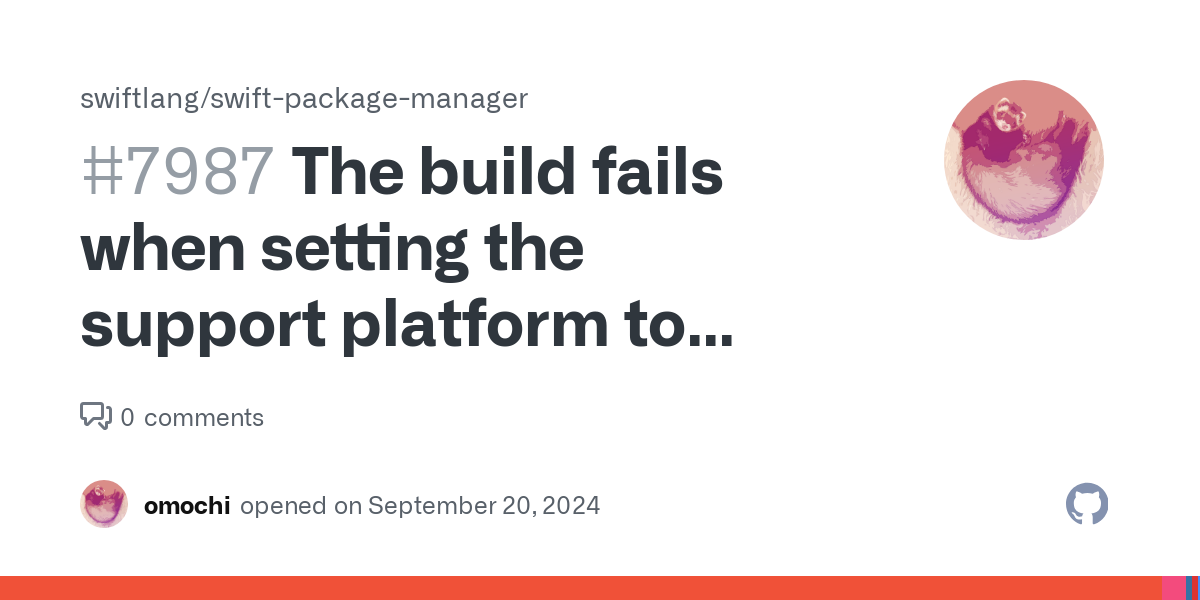 1@inlinableとか駆使してるライブラリがビルドできなくて扱いづらい @inlinable を駆使して高速なモードになってほしいとしたら? (edited)@inlinable を駆使して高速なモードになってほしいとしたら? (edited)NIOHTTP1 の中のちょっとした型とかがVapor の中でガチャガチャ操作されたりしている*.xcframework単体のポン置きをイメージしてしまったけどそれはそうか*.xcframework単体のポン置きをイメージしてしまったけどそれはそうか .binaryTarget 作ってねっていう配布方法も一応可能なのか。MODULEMAP_FILE_CONTENT というパラメータに文字列をいれてやる方法を使っているので、 (2)で持ってる自前のモジュールマップ生成結果を このパラメータに上書きしてやれば、統合できると思います。 生成先のパスも MODULEMAP_PATH かなんかで指定されているので変更できる。 問題があるケースというのもそれでうまく解決すると思う。 (edited)MODULEMAP_FILE_CONTENTS をなくして自動生成を抑止する-fmodule-map-file を渡さないようにするMODULEMAP_FILE に渡してFrameworkに含むようにする-Fで生成したフレームワーク内のモジュールを正としてあつかうようにする という変更を試してみたら、NIOSSLのビルドは維持出来たし動いてそうだMODULEMAP_FILE にわたすのではなくて、MODULEMAP_FILE_CONTENTS と MODULEMAP_PATH を使って、xcbuildに生成させたらどう?MODULEMAP_FILEとMODULEMAP_PATH一緒にしたらうまく動かないかなPackage(name:) ってなんの意味があるんだ??Package.name が表示されている.package(name:url:branch:) を使うと定義されてる名前のほうが使える、が、deprecatedだid というので指定できるらしい これもちょっと違う話だなPackage の name とリポジトリ名は意図して統一している感じですよね. (edited)SwiftSyntax から swift-syntax に変更している (edited)platforms 書かなかった場合は何でも OK だけど、 platforms: [.iOS(.v13)] みたいに書いたときは iOS 以外で使えなくなると思ってたんですよね。それが勘違いなら問題ないです。 #if !os(iOS) コンパイルエラー #endifplatforms にiOSだけ指定してるとmacOSのバージョンが適合できないと言われるし、かと言ってじゃあ platforms にmacOS追加したら今度は import UIKit で怒られるし、全部のファイルに #available iOS つけるのも大変だし… #if os(iOS) // コード #endifswift build とかしたい時が多々あって… swift build を素で打つと、暗黙にmac向けにビルドする話になっているのでswift build --platform とかほしいw--sdk とか --toolchain はあるけどplatforms: 指定があるのだから --platform iOS って書きたいですね。xcrun --sdk iphonesimulator --show-sdk-path" -Xswiftc "-target" -Xswiftc "x86_64-apple-ios13.0-simulator"swift build で iOS 向けにビルドすることもできるようになりそうな気がしてます. 実際にそれを試してみた PoC リポジトリが以下にありますし. https://forums.swift.org/t/introducing-an-sdk-for-building-ios-macos-apps-on-linux-experimental/66233swift-foundation も一緒に進めてほしいなあ.framework の組み立てを自前でやるのはわかるけど、 PIF(xcbuild)の利用は続いてるみたいで、 PIFの加工は減ったけど無くなってはないみたいで、 結局元PIFの役割はどこまで残ってるのかが知りたい あと、元々それだとビルドできないから加工してたという認識だけど、 なぜ加工を減らしても大丈夫なの? (edited).framework の組み立てを自前でやるのはわかるけど、 PIF(xcbuild)の利用は続いてるみたいで、 PIFの加工は減ったけど無くなってはないみたいで、 結局元PIFの役割はどこまで残ってるのかが知りたい あと、元々それだとビルドできないから加工してたという認識だけど、 なぜ加工を減らしても大丈夫なの? (edited)\(ProcessInfo.processInfo.environment["PWD"]!)でできました。ありがとうございますPackage.swift を指定するオプションを使うとズレそうね#file は信用できそう 都度コンパイルされてるし.linkedLibraryを使ってるんですが、ここ-Lとして渡されるからLDサーチパス内の名前か絶対パスしか使えないんですよねswift build するときに-Xswiftc -L で渡す、かなぁ-lXで指定されたライブラリにlibX.soとlibX.aがあるとき普通のリンカは.soを優先するけど、-l:libX.a で指定するとライブラリのファイル名をフルで指定できる