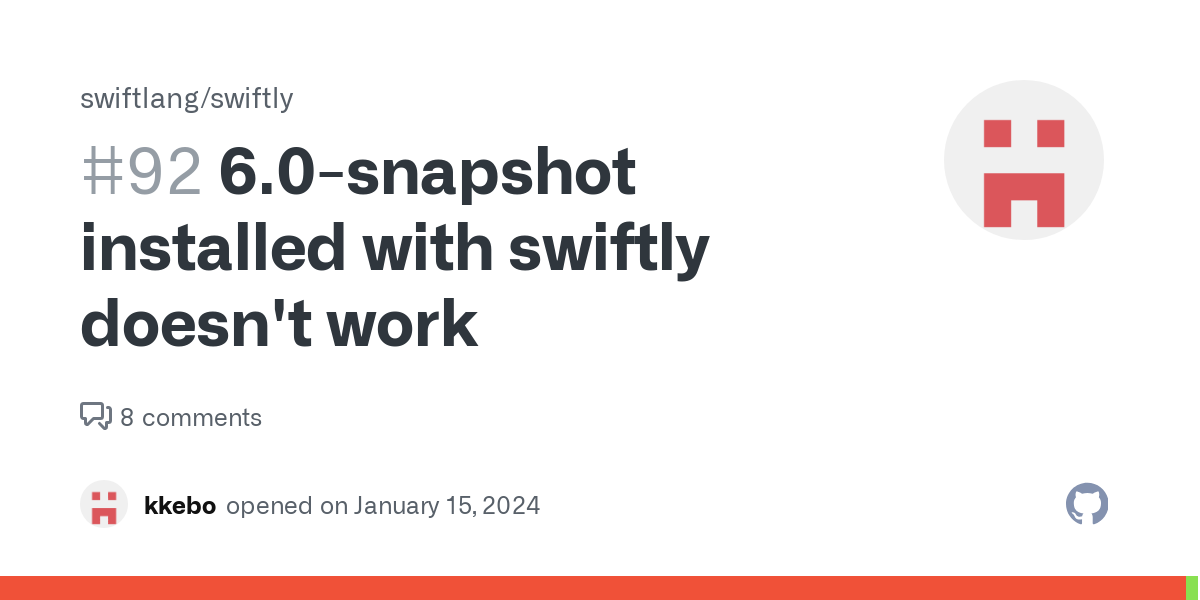 1-Xswiftc -disallow-use-new-driver を渡すとある程度の部分までは動きました (1 月くらいに確認した時点では) (edited)docker image pull してコンテナ内のツールチェーンのバージョンとイメージのハッシュをメモして力技で何とかしてました.(自動化できそう)usr/ が出てくるのだと思ったら swift-DEVELOPMENT-SNAPSHOT-2024-04-02-a-ubuntu22.04/ が出てきた。--strip-components=1-Xswiftc -disallow-use-new-driver を渡すとある程度の部分までは動きました (1 月くらいに確認した時点では) (edited)swift コマンドの代わりに古い swift-driver で動いてくれる swift-legacy-driver コマンドがあったのを忘れてました.これが廃止されるまでは swiftly でインストールした場合はこっちでも何とかなりますね.(e.g. swift-legacy-driver build, swift-legacy-driver experimental-sdk install) (edited)/proc/self/cmdline 依存だったコマンド引数取得をスタックスキャンするようにしたところですかねぇ-M raspi4b が使えないのでたまたまリリースを待ち侘びてました. (edited)tonistiigi/binfmt:qemu-v8.1.5を試してみてます。