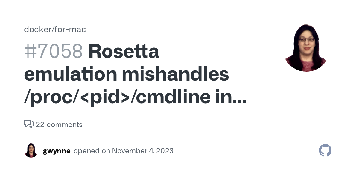 1--platform=linux/amd64を付けて実行した時に/proc/self/cmdlineの内容がバグってて、 $ docker run --platform=linux/arm64 alpine cat /proc/self/cmdline|xargs -0 echo cat /proc/self/cmdline $ docker run --platform=linux/amd64 alpine cat /proc/self/cmdline|xargs -0 echo /bin/cat cat /proc/self/cmdline