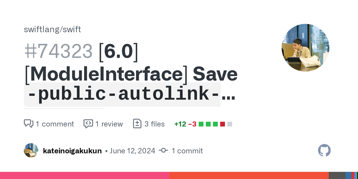 1tonistiigi/binfmt:qemu-v8.1.5を試してみてます。 --static-swift-stdlibをつけるとリンクエラーになる件、/usr/lib/swift_static/CoreFoundation/module.modulemapと/usr/lib/swift_static/dispatch/module.modulemapで指定されているライブラリがリンカへ渡されていないからみたい。swift-autolink-extractの担当かな?--swift-sdkを受け取ってるのはmainの20240604です。-lDispatchStubsとかが現れるので、それのレスポンスファイルを作成に関わってそうな5.10.1のclangかswift-autolink-extractが怪しいのかなと。-Xswiftc -save-tempsで残せました。ありがとうございます。 (edited)swift-autolink-extractの出力が違ってた。-public-autolink-library でFoundation.swiftmoduleのLINK_LIBRARYエントリとして登録しているので、$ diff -u cross-on-docker.autolink cross-on-mac.autolink --- cross-on-docker.autolink 2024-06-11 16:39:17 +++ cross-on-mac.autolink 2024-06-11 16:39:37 @@ -5,15 +5,12 @@ -lswiftGlibc -lBlocksRuntime -ldispatch --lDispatchStubs -lswiftDispatch --lCoreFoundation -lFoundation -lFoundationNetworking -lFoundationXML -lcurl -lxml2 --luuid -licui18nswift -licuucswift -licudataswiftmoudle.modulemapの定義として該当するのは、DispatchとCoreFoundationですね。 (edited)import Foundation であればリンカオプションなしでリンクできる…はず…import Foundationはあると思う。swift-autolink-extractはswift-driverのお仕事なのかな。swift-autolink-extract はフロントエンドのお仕事ですねswift-autolink-extractは5.10.1のやつが使われてるぽいから、mainで直っても恩恵を受けるのは当分先ですよね。swift.xctoolchain/usr/lib/swift_static/linux/static-stdlib-args.lnkに-lDispatchStubs -lCoreFoundation -luuidを追加することで--static-swift-stdlibでのビルドが通るようになりました。 (edited)