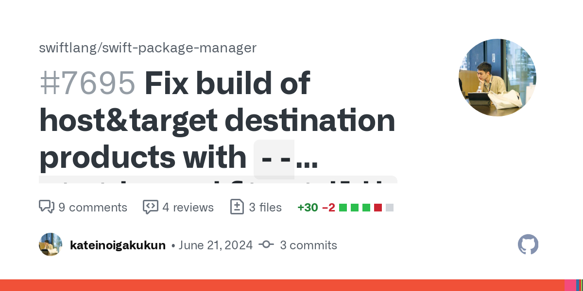 1swift build --verbose --swift-sdkで観測できる、生成されるfrontendへのコマンドラインオプションをコピーしてbotのCLIへ渡そうとすると、Discordのメッセージ長制限に引っかかる。swift build --swift-sdkは、最後codesignしようとしてcodesignがなくて失敗する。import SwiftUIもいける--swift-sdk相当のオプションを暗黙で渡せるようにするのは現状では難しいです。 特定バージョンのコンパイラに最新SDKの組み合わせが常に使われるbotを別途用意するのはできるかも?ってところ。