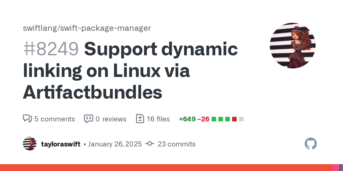 -target arm64-apple-macosx15.0 -Onone -resource-dir /home/bot/.swiftpm/swift-sdks/darwin.artifactbundle/Developer/Toolchains/XcodeDefault.xctoolchain/usr/lib/swift -color-diagnostics -swift-version 6 -sdk /home/bot/.swiftpm/swift-sdks/darwin.artifactbundle/Developer/Platforms/MacOSX.platform/Developer/SDKs/MacOSX15.2.sdk -use-ld=lld -Xfrontend -tools-directory -Xfrontend /home/bot/.swiftpm/swift-sdks/darwin.artifactbundle/toolset/bin -sdk /home/bot/.swiftpm/swift-sdks/darwin.artifactbundle/Developer/Platforms/MacOSX.platform/Developer/SDKs/MacOSX15.2.sdk -ld-path=/home/bot/.swiftpm/swift-sdks/darwin.artifactbundle/toolset/bin/ld64.lld -g -Xcc -isysroot -Xcc /home/bot/.swiftpm/swift-sdks/darwin.artifactbundle/Developer/Platforms/MacOSX.platform/Developer/SDKs/MacOSX15.2.sdk -Xcc -g -I /home/bot/.swiftpm/swift-sdks/darwin.artifactbundle/Developer/Platforms/MacOSX.platform/Developer/usr/lib -swift buildが--swift-sdkオプションの指定で上記オプションを生成する部分が、botが利用しているswiftには存在しないので、この面倒をみないと簡易にSwiftSDKを切り替えられる様にはできない。 (edited)/usr/bin/swift-frontend --version Swift version 6.0.3 (swift-6.0.3-RELEASE) Target: x86_64-unknown-linux-gnuTarget: x86_64-apple-macosx15.2 Swift version 6.0.3 (swift-6.0.3-RELEASE) Target: x86_64-apple-macosx15.2 (edited)import SwiftUI (edited)import SwiftUI (edited)/usr/bin/swift-frontend -frontend -interpret - -target x86_64-apple-ios18.2-macabi -enable-objc-interop -sdk /home/bot/.swiftpm/swift-sdks/darwin.artifactbundle/Developer/Platforms/MacOSX.platform/Developer/SDKs/MacOSX15.2.sdk -I /home/bot/.swiftpm/swift-sdks/darwin.artifactbundle/Developer/Platforms/MacOSX.platform/Developer/usr/lib -tools-directory /home/bot/.swiftpm/swift-sdks/darwin.artifactbundle/toolset/bin -empty-abi-descriptor -resource-dir /home/bot/.swiftpm/swift-sdks/darwin.artifactbundle/Developer/Toolchains/XcodeDefault.xctoolchain/usr/lib/swift -Xcc -isysroot -Xcc /home/bot/.swiftpm/swift-sdks/darwin.artifactbundle/Developer/Platforms/MacOSX.platform/Developer/SDKs/MacOSX15.2.sdk -module-name main -target-sdk-version 18.2 -target-sdk-name macosx15.2 -prebuilt-module-cache-path /home/bot/.swiftpm/swift-sdks/darwin.artifactbundle/Developer/Toolchains/XcodeDefault.xctoolchain/usr/lib/swift/macosx/prebuilt-modules -external-plugin-path '/home/bot/.swiftpm/swift-sdks/darwin.artifactbundle/Developer/Platforms/MacOSX.platform/Developer/usr/lib/swift/host/plugins#/home/bot/.swiftpm/swift-sdks/darwin.artifactbundle/Developer/Platforms/MacOSX.platform/Developer/usr/bin/swift-plugin-server' -external-plugin-path '/home/bot/.swiftpm/swift-sdks/darwin.artifactbundle/Developer/Platforms/MacOSX.platform/Developer/usr/local/lib/swift/host/plugins#/home/bot/.swiftpm/swift-sdks/darwin.artifactbundle/Developer/Platforms/MacOSX.platform/Developer/usr/bin/swift-plugin-server' -plugin-path /usr/lib/swift/host/plugins -plugin-path /usr/local/lib/swift/host/pluginsTarget: x86_64-apple-ios18.2-macabi Swift version 6.0.3 (swift-6.0.3-RELEASE) Target: x86_64-apple-ios18.2-macabi (edited)#if canImport(Musl) print("Hello, Musl!") #endif#if canImport(Musl) print("Hello, Musl!") #endif Hello, Musl!Target: x86_64-swift-linux-muslsdkRootPath: /home/bot/.swiftpm/swift-sdks/swift-6.0.3-RELEASE_static-linux-0.0.1.artifactbundle/swift-6.0.3-RELEASE_static-linux-0.0.1/swift-linux-musl/musl-1.2.5.sdk/x86_64 swiftResourcesPath: /home/bot/.swiftpm/swift-sdks/swift-6.0.3-RELEASE_static-linux-0.0.1.artifactbundle/swift-6.0.3-RELEASE_static-linux-0.0.1/swift-linux-musl/musl-1.2.5.sdk/x86_64/usr/lib/swift_static swiftStaticResourcesPath: /home/bot/.swiftpm/swift-sdks/swift-6.0.3-RELEASE_static-linux-0.0.1.artifactbundle/swift-6.0.3-RELEASE_static-linux-0.0.1/swift-linux-musl/musl-1.2.5.sdk/x86_64/usr/lib/swift_static includeSearchPaths: not set librarySearchPaths: not set toolsetPaths: ["/home/bot/.swiftpm/swift-sdks/swift-6.0.3-RELEASE_static-linux-0.0.1.artifactbundle/swift-6.0.3-RELEASE_static-linux-0.0.1/swift-linux-musl/toolset.json"] (edited)import Musl print("Hello, Musl!")import Musl print("Hello, Musl!") Target: x86_64-swift-linux-musl <unknown>:0: error: compiled module was created by an older version of the compiler; rebuild 'Swift' and try again: /home/bot/.swiftpm/swift-sdks/swift-DEVELOPMENT-SNAPSHOT-2025-01-05-a_static-linux-0.0.1.artifactbundle/swift-DEVELOPMENT-SNAPSHOT-2025-01-05-a_static-linux-0.0.1/swift-linux-musl/musl-1.2.5.sdk/x86_64/usr/lib/swift_static/linux-static/Swift.swiftmodule/x86_64-swift-linux-musl.swiftmoduleimport Musl print("Hello, Musl!") Hello, Musl!Target: x86_64-swift-linux-muslimport Musl print("Hello, Musl!") Hello, Musl!Target: x86_64-swift-linux-musl$ curl -fLsS https://download.swift.org/swift-6.1-branch/static-sdk/swift-6.1-DEVELOPMENT-SNAPSHOT-2025-03-12-a/swift-6.1-DEVELOPMENT-SNAPSHOT-2025-03-12-a_static-linux-0.0.1.artifactbundle.tar.gz -O $ sha256 swift-6.1-DEVELOPMENT-SNAPSHOT-2025-03-12-a_static-linux-0.0.1.artifactbundle.tar.gz SHA256 (swift-6.1-DEVELOPMENT-SNAPSHOT-2025-03-12-a_static-linux-0.0.1.artifactbundle.tar.gz) = c701d3f5bb69464fd443f20c4748cab068c9c6d8f6995f1ba5be70022778d21f $ cat swift-6.1-DEVELOPMENT-SNAPSHOT-2025-03-12-a_static-linux-0.0.1.artifactbundle.tar.gz <?xml version="1.0" encoding="UTF-8" standalone="no"?><Error><Code>404</Code><Message>No message</Message><RequestId>7e2efc3d-e9a6-48be-935e-8c25252d5475</RequestId></Error>$ swift sdk install --checksum c701d3f5bb69464fd443f20c4748cab068c9c6d8f6995f1ba5be70022778d21f https://download.swift.org/swift-6.1-branch/static-sdk/swift-6.1-DEVELOPMENT-SNAPSHOT-2025-03-12-a/swift-6.1-DEVELOPMENT-SNAPSHOT-2025-03-12-a_static-linux-0.0.1.artifactbundle.tar.gz Downloading a Swift SDK bundle archive from `https://download.swift.org/swift-6.1-branch/static-sdk/swift-6.1-DEVELOPMENT-SNAPSHOT-2025-03-12-a/swift-6.1-DEVELOPMENT-SNAPSHOT-2025-03-12-a_static-linux-0.0.1.artifactbundle.tar.gz`... Downloading 100