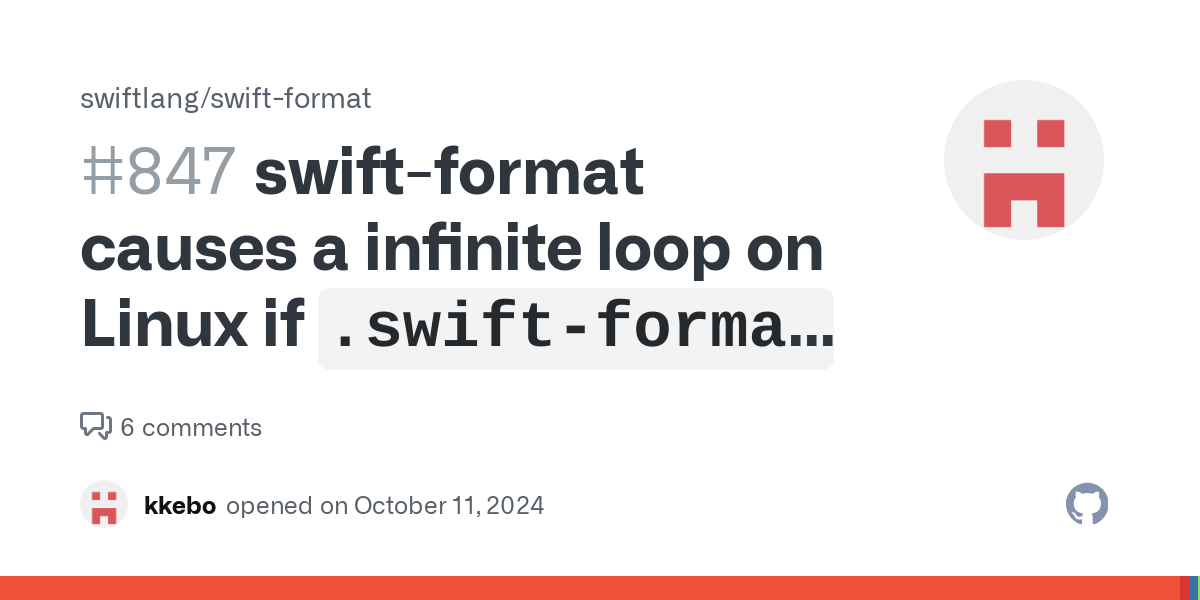 (edited)/ の上が /.. になる環境もあるらしくて,その環境での無限ループを修正するために /foo の上が空になる環境 (Linux の Swift 6.0) でまた無限ループが再発してしまった... この辺は連鎖的に問題が起こっていて大変そうですね... https://github.com/swiftlang/swift-format/pull/845swift -versionしか実行してないから、引っかからないぽい。 swift test を aarch64 Linux の実機で実行するとクラッシュもしくはカーネルごとハングするので qemu-user-static の問題と関連していたりしないか気になってます. Fedora 40 (Asahi Linux) だとシェルごとクラッシュして,Raspberry Pi OS (Debian 12) だとカーネルごとハングしてマシンごと強制再起動するしかなくなります.どちらも aarch64 Linux です.x86_64 Linux 環境だと今のところ同じ条件でもこのような問題が起きたことはないです.aarch64 Linux 環境でもこのリポジトリの swift test 以外で同じ Swift ツールチェーンを使っている上では何も問題が起こったことがないです.Process.waitUntilExit() がハングするんですがそんなことってあります? import Foundation let process = Process() process.executableURL = URL(fileURLWithPath: "/bin/sh") process.arguments = ["-c", "echo 'Hello, World!'"] let stdout = Pipe() process.standardOutput = stdout try process.run() let stdoutData = stdout.fileHandleForReading.readDataToEndOfFile() let stdoutString = String(data: stdoutData, encoding: .utf8)! process.waitUntilExit() // <- ここで固まって先に進まない print(stdoutString) (edited)waitUntilExit の前に while process.isRunning {} するだけで通るようになるのも謎Process.waitUntilExit() がハングするんですがそんなことってあります? import Foundation let process = Process() process.executableURL = URL(fileURLWithPath: "/bin/sh") process.arguments = ["-c", "echo 'Hello, World!'"] let stdout = Pipe() process.standardOutput = stdout try process.run() let stdoutData = stdout.fileHandleForReading.readDataToEndOfFile() let stdoutString = String(data: stdoutData, encoding: .utf8)! process.waitUntilExit() // <- ここで固まって先に進まない print(stdoutString) (edited)waitUntilExit()がハングアップするようになって、16.04へ戻したことがある。 (edited)swift-5.0-RELEASEの時だった。まあ今でも実行環境により動かなくなる実装になっててもおかしくはない?swift package init --type executable して swift build --swift-sdk arm64-apple-macosx --product test で作成したtestがmacOS上で動くところまで確認できたけど、botに使わせるのはかなりハードルが高いな。swift build --swift-sdkが生成するコマンドラインを、botのCLIへ渡す必要がある。