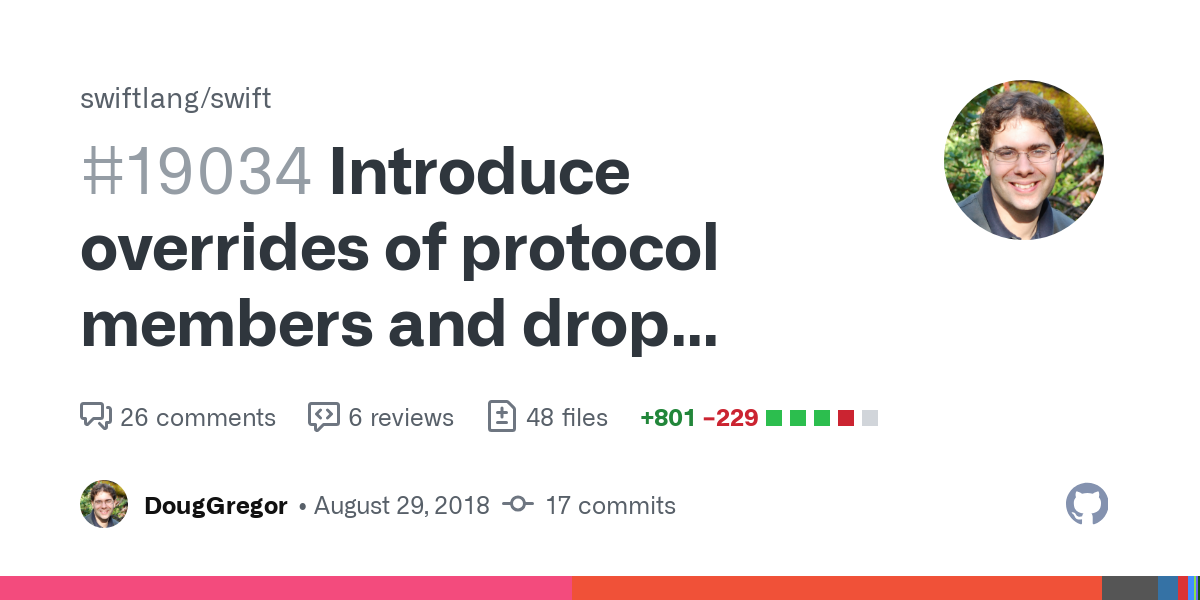 When a protocol restates a requirement from its inherited protocol, track that as an override the same way we do with overrides in classes. Such overrides are recorded in the AST but are omitted fr...
