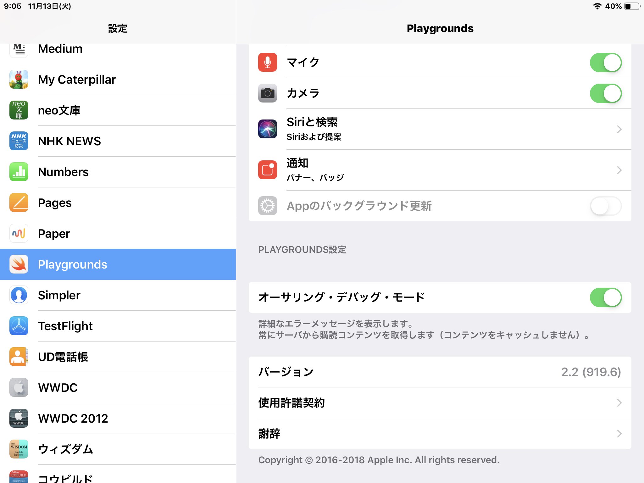 2016-09-13 New document that describes the formats used for creating books for Swift PlaygroundsThis package includes a sample Xcode project and related tools to aid in creating, debugging, and producing a playground book document compatible with Swift Playgrounds for iPad, including support for all of the features available in Swift Playgrounds 2.1. This package requires a Mac, and supports Xcode 9.3. It may not be compatible with later releases of Xcode. (edited)import Foundation let calendar = Calendar.init(identifier: Calendar.Identifier.gregorian) DispatchQueue.concurrentPerform(iterations: 1000) { i in let timeZone = TimeZone(secondsFromGMT: 0)! let components: DateComponents = calendar.dateComponents(in: timeZone, from: Date()) }<stdin>:7:9: warning: immutable value 'components' was never used; consider replacing with '_' or removing it let components: DateComponents = calendar.dateComponents(in: timeZone, from: Date()) ^~~~~~~~~~ _ pure virtual method called pure virtual method called terminate called without an active exception terminate called recursively pure virtual method called terminate called recursivelyprint(String(UInt64.max) == String(Int64.max))let data = """ {"data": 9223372036854775808} """ struct Foo: Codable { var data: UInt64 } import Foundation print(try! JSONDecoder().decode(Foo.self, from: data.data(using: .utf8)!)) (edited)./Playground.playground/Resources/ この辺にFrameworkのパスを置ければなんとかならないかなfunc f(_ a: Any) { print(type(of: a)) } func f(_ a: Float) { print(type(of: a)) } f(1)func f(_ a: Any) { print(type(of: a)) } func f(_ a: Float) { print(type(of: a)) } f(1)swift-5.1-RELEASEInt{} の補完とかするのがわかりづらそうだった記憶があります。自分で入力してないから、 } を消しちゃったりインデント破壊しちゃったときに、直し方がわからないみたいな。The code signature contains entitlements.  iCloud entitlements: iCloud store: “BVNY5T73P8.com.apple.Playgrounds”. iCloud containers: “iCloud.com.apple.Playgrounds”. Sandbox entitlements: User-selected files, read/write access: YES. Allow outgoing network connections: YES. Allow incoming network connections: YES. Allow camera access: YES. Application identifier: “BVNY5T73P8.com.apple.PlaygroundsMac”. com.apple.developer.ClassKit-environment: “production”. com.apple.developer.associated-domains: “applinks:developer.apple.com”. com.apple.developer.icloud-services: “CloudDocuments”. com.apple.developer.associated-application-identifier: “BVNY5T73P8.com.apple.Playgrounds”. com.apple.developer.icloud-container-identifiers: “iCloud.com.apple.Playgrounds”. Temporary exception entitlements: files.home-relative-path.read-write: “/Documents/Playgrounds/”. iokit-user-client-class: “AppleMobileFileIntegrityUserClient”. shared-preference.read-only: “com.apple.AssetCacheLocator”. mach-lookup.global-name: “com.apple.rtcreportingd”, “com.apple.AssetCacheLocatorService”, “com.apple.security.syspolicy.exec”. Apple private exception entitlements: tcc.policy-override: YES. amfi.can-load-cdhash: YES. MobileContainerManager.wipeContainer: “com.apple.PlaygroundsMac.ExecutionExtension”. syspolicy.execution-policy-bypass: YES. rtcreportingd: YES. tcc.allow-prompting: “kTCCServiceAll”.print(1)swift-5.2-RELEASE1protocol Initializable { init() } struct MyStruct: Initializable { init() {} } protocol P { associatedtype Assoc func foo() -> Assoc func bar() -> Assoc } struct S: P { func foo() -> some Initializable { return MyStruct() } func bar() -> Assoc { return Assoc() } }Assoc が @returnTypeOf(P.foo()) に推論されてそれが使えるみたいですね。associatedtype が複数箇所で使われてたら some は使えないとおもってた。@returnTypeOf(P.foo())