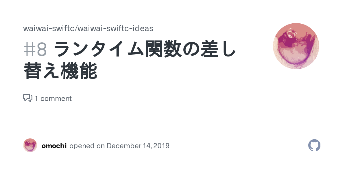 フックトリックでみんな幸せになれそうだし、次回仕組み解説するか https://github.com/waiwai-swiftc/waiwai-swiftc-ideas/issues/8