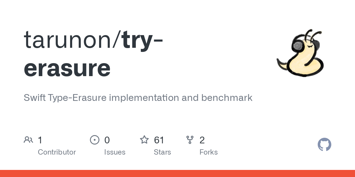 Swift Type-Erasure implementation and benchmark. Contribute to tarunon/try-erasure development by creating an account on GitHub.