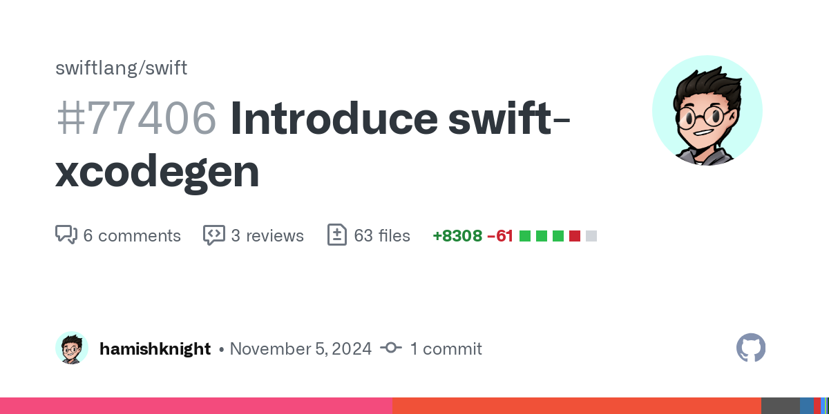 1Tests/FoundationInternationalizationTests/Formatting/DateFormatStyleTests.swiftのtestSettingLocaleはDate.FormatStyle(timeZone: .gmt)を入れてやる必要がある。// dateFormatter.date(from: "2021-04-12 15:04:32")! これがPSTだとGMT-8で同じく4/12 7時だけど、JSTのGMT+9だと4/13 0時になって日付・曜日が変わるから落ちるんですね…… (edited)__SwiftValue.store で中でNSObjectに変換される時に SwiftFoundation.NSNumber になってほしいのに __NSCFNumber になってしまう…… https://github.com/apple/swift-corelibs-foundation/blob/41b71f9ee2deb4065c9e6dd3658253a2f8f85044/Sources/Foundation/Bridging.swift#L180-L186 (edited)__NSCFNumber になるが、Intから直接AnyObjectにすると SwiftFoundation.NSNumber になる。愉快だ……pbxproj のXMLを作ってるのかな utils/generate-xcode ../build/Ninja-RelWithDebInfoAssert it is not designed to produce compiled products or run tests, that should be done with ninja and build-script と書いてありました。 https://github.com/swiftlang/swift/blob/main/utils/swift-xcodegen/README.md (edited)test/Sema/issue-XXXX.swift 形式は、複雑な入力とかでテーマがよくわからない場合に留めるべきです。ファイル名からどのような内容のテストが書かれているかわからないし、機能で整理されてないので後から見通しが悪い。test/Concurrency/sendable_conformance_checking.swift などにあります。sendable_conformance_skip_sending.swift みたいな。sendable_conformance_checking_skip_sending.swiftに変更しました。