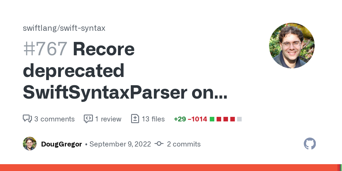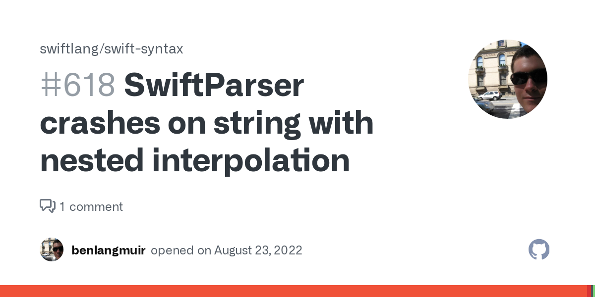 1var opPrecedence = OperatorPrecedence.standardOperators // Use the Swift standard library operators let parsed = try Parser.parse(source: "x + y * z") dump(parsed) // contains SequenceExprSyntax(x, +, y, *, z) let folded = try opPrecedence.foldAll(parsed) dump(folded) // contains InfixOperatorExpr(x, +, InfixOperatorExpr(y, *, z))let parsedOperators = try Parser.parse(source: moreOperators) // Adds **, ExponentiationPrecedence to the set of known operators and precedence groups. try opPrecedence.addSourceFile(parsedOperators) let parsed2 = try Parser.parse(source: "b ** c ** d") dump(parsed2) // contains SequenceExprSyntax(b, **, c, **, d) let folded2 = try opPrecedence.foldAll(parsed2) dump(folded2) // contains InfixOperatorExpr(b, **, InfixOperatorExpr(c, **, d))"""" を食わせると、1文字目と5文字目に " が足りませんよ、っていう出力になるんだが """""" は別に正しいコードになってないので謎だ。[omochi@omochi-iMacPro swift-syntax (add-fixed-issues-test %=)]$ .build/debug/swift-parser-test dump-tree crash.swift SourceFileSyntax children=2 0: CodeBlockItemListSyntax children=1 0: CodeBlockItemSyntax children=1 0: StringLiteralExprSyntax children=3 0: stringQuote MISSING 1: StringLiteralSegmentsSyntax children=1 0: StringSegmentSyntax children=1 0: stringSegment("\"\"\"\"") 2: stringQuote MISSING 1: eof" + "" + " に解釈しようとしかけるが、(ダブルクォート2つがコンテンツである文字列) (edited)" + "" + " のロジックは # がついてる時だけだ。ParseSourceFileRequest::evaluate に swift_parser_consistencyCheck とやらを仕込んだprivate(set) のパースを考えるときに private(var という入力が来たら、 private(set) var の set) がスッポ抜けていると考える という動作が parser.expect(.rightParen) だとできるなあ (edited)private(get, set) を考えると、, が ) より強いので、 get, をノイズと判定できずに , で力尽きて set) の不存在と、 後続ノイズの set) になってしまうな。expect 使ったら?というコメントが来たので、それだと private(get, set) のパースが微妙になってしまう、という返事をしたけど、 もしいろいろ誤読してるとややこしくなりそうなので実装例も用意して説明をした (edited)extra token munging here. はおそらく先行する2つのwhile loopとかを言ってるんだと思うけど、もしかしたらただ consume(if:) の1行だけを指してるのかもしれない・・・) を探すときに get も , も 食えるから助かるな。 openとcloseでレベルが違う事になってるけどそれは問題ないんだろうか) まで走るのは求めてるのとちょっと違うな。 探してるものが見つからずに強いトークンにぶつかった場合、 先読み失敗じゃなくてそこで止まってほしいわ#704 のために導入してくれた canRecoverToContextualKeyword が他では一箇所も使われてないから、 実装パターンを改善したり、壊れたコードに対する回復力を高められる場所がいろいろ眠ってそうな気はする#777