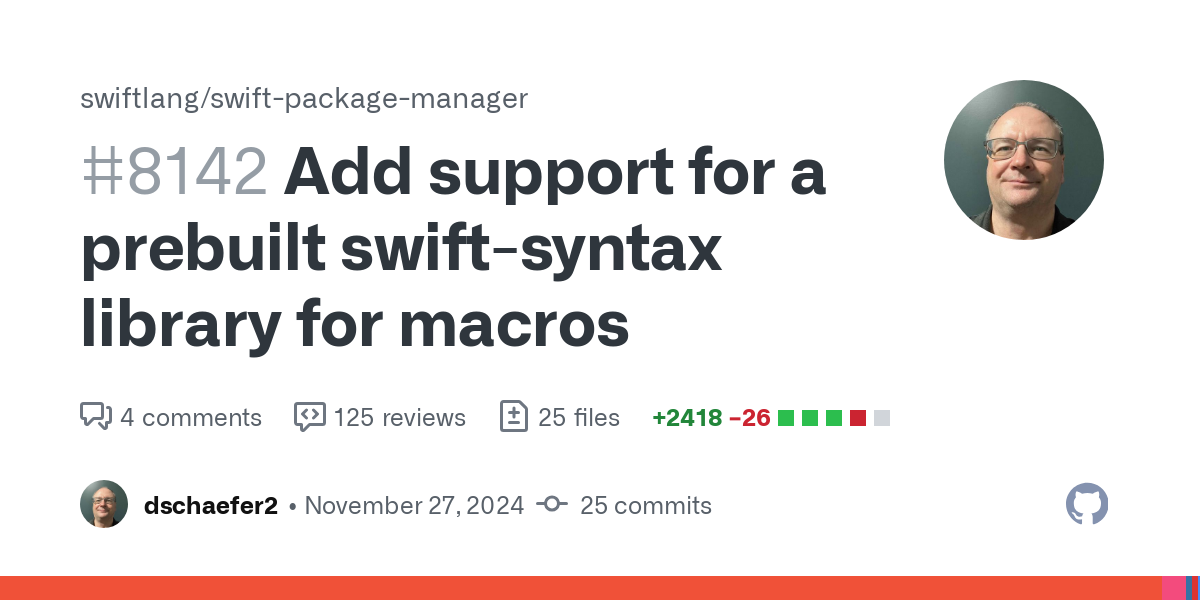 (edited)#if canImport(SwiftSyntax510) // code specific to swift-syntax version >= 510 #elseif canImport(SwiftSyntax509) // code to support swift-syntax version 509 #else // code for swift-syntax < 509. Not needed for macros since macros require swift-syntax >= 509. #endifSwiftSyntax の定義はどうなってるんだ? override func visit(_ node: IdentifierExprSyntax) -> ExprSyntax { if case .binaryOperator = node.identifier.tokenKind { return super.visit(node) } guard let parent = node.parent, parent.syntaxNodeType != FunctionCallExprSyntax.self else { return super.visit(node) } #if canImport(SwiftSyntax509) if let parent = node.parent, let memberAccess = parent.as(MemberAccessExprSyntax.self), memberAccess.declName == node { return super.visit(node) } if let parent = node.parent, parent.syntaxNodeType == KeyPathPropertyComponentSyntax.self { return super.visit(node) } #endif let column = graphemeColumn(node) return apply(ExprSyntax(super.visit(node)), column: column) } のように書けるところは差分で書けるようになってわかりやすくなるはず。registerNodeForIncrementalParse がミソっぽいけどよくわからない top levelのcode block itemと、declのmember block itemのパース単位で、開始トークンの位置を記録してる?っぽいけど、 どうやって問題のケースで巻き戻ってるんだろ@defineFoo() // 3. ここに飛んでしまう。`var aaa`に飛ばしたい struct S { var aaa: Int var aaaFoo: Int // 1. マクロで生えた } S().aaaFoo // 2. 使用箇所。ここでaaaFooにカーソル合わせて定義ジャンプする (edited).package( url: "https://github.com/apple/swift-syntax", "508.0.0"..<"510.0.0" ) SwiftSyntaxへの依存は範囲で書く、っていうのはその通りっぽいな。これからそうしよう。 https://www.pointfree.co/blog/posts/116-being-a-good-citizen-in-the-land-of-swiftsyntax#if canImport(SwiftSyntax509) と分岐できるようになって最小限で済むようになったのがちょっと前進、みたいな。