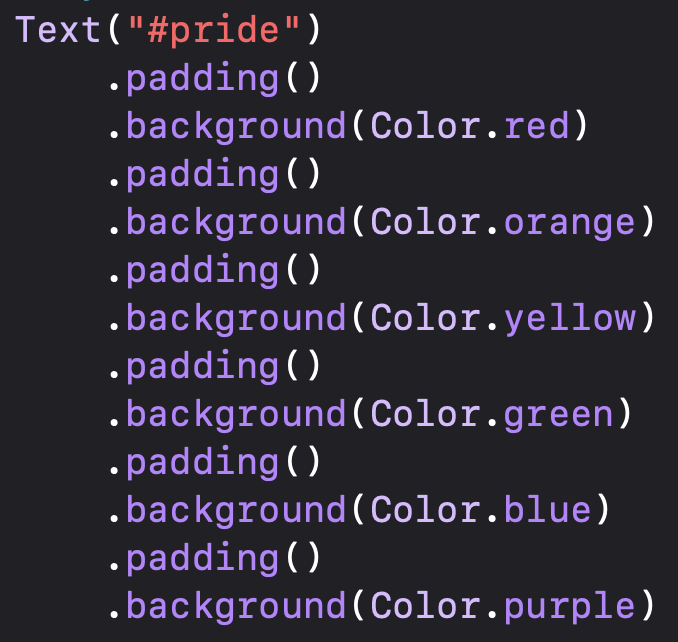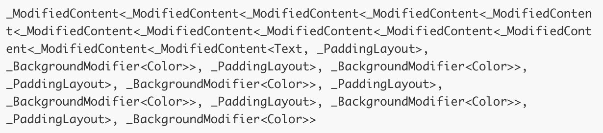 mut let のときと let でシャドーイングのときを区別しないといけなくて、 Swift 的思考だとハマりそう。 (edited)padding )はインスタンス生成してないとできない。 Text(string) .padding(EdgeInsets(top: 8, leading: 16, bottom: 8, trailing: 16)) .background(Color.white) .cornerRadius(16) .padding(EdgeInsets(top: 10, leading: 10, bottom: 10, trailing: 10))GeometryReader 使ってできそう。もっといいやり方ありそうだけど。 struct ContentView : View { var body: some View { VStack { GeometryReader { geometry in VStack { Spacer() .frame( width: geometry.size.width + geometry.safeAreaInsets.leading + geometry.safeAreaInsets.trailing, height: geometry.safeAreaInsets.top ) .background(Color.blue) ZStack { Spacer() .frame( width: geometry.size.width + geometry.safeAreaInsets.leading + geometry.safeAreaInsets.trailing, height: 100 ) .background(Color.red) Text("Custom Bar") } } .edgesIgnoringSafeArea(.init([ .top, .leading, .trailing ])) } } } } (edited)layoutPriority とかもあるみたいだから、かなりのことはできそう。 https://developer.apple.com/documentation/swiftui/view/3278584-layoutpriorityGeometryReader 胸熱struct ContentView : View { @State var int = 0 var body: some View { let red = int > 0 Text("Hello World") .background(red ? Color.red : Color.blue) } } ↑はビルドエラーになるけど struct ContentView : View { @State var int = 0 var red: Bool { int > 0 } var body: some View { Text("Hello World") .background(red ? Color.red : Color.blue) } } ならOKですねImage("owl") .resizable() .edgesIgnoringSafeArea([.top, .horizontal]) ^ これを Image("owl") .edgesIgnoringSafeArea([.top, .horizontal]) .resizable() ^ このように入れ替えられない、とかけっこう難しいと思うんですよね。@State なpropertyが中身のオブジェクトのアクセサ持ってるの、これ使ってるんですね https://twitter.com/v_pradeilles/status/1136755695427018752?s=21List row in #SwiftUI that forwards the tap events to controls in the cell? (i.e. List { VStack { Text(..) Button(action: ..) { Text("Press me") } } }` Trying to tap the button just selects the celldynamicがPure Swiftのメソッド・プロパティにも付けられるようになってて、_@dynamicReplacememtで差し替えられる機構がホットリロードに使われてるようで面白い! https://forums.swift.org/t/how-does-the-hot-reloading-work-in-xcode11/25312