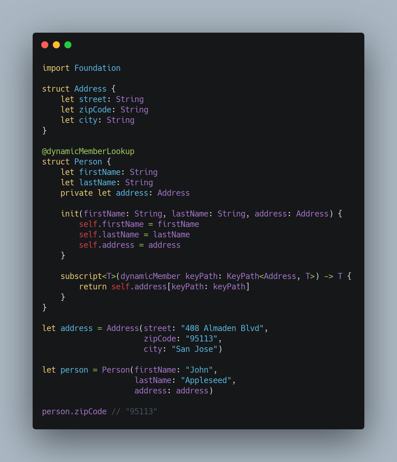 dynamicMemberLookup now supports typed KeyPaths 🤯 This means a type can now seamlessly integrate the API of its dependency within its own API ⬇️