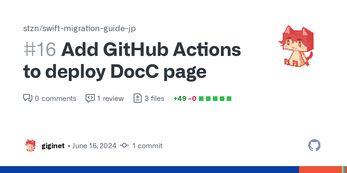 1v5.7のラベル付けています。もしやりたいものがあればAssigneesにお名前追加してください! https://github.com/stzn/the-swift-programming-language-jp/issues (edited)